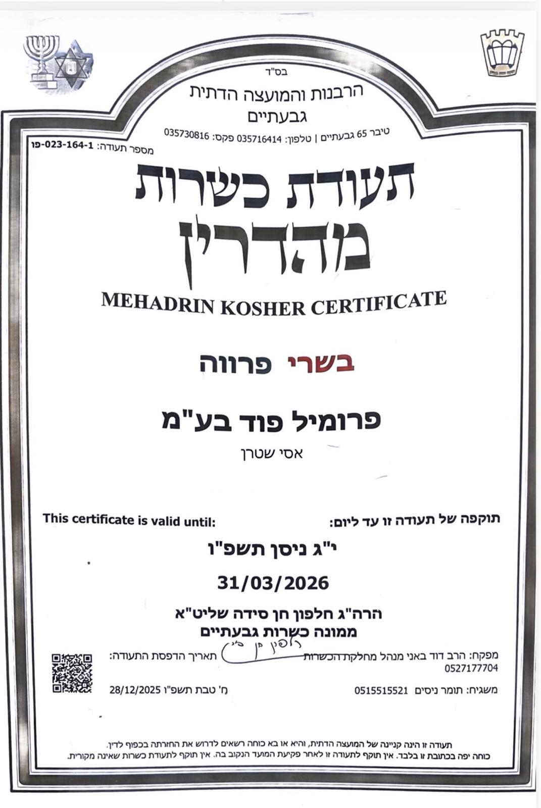 בפרומיל אנחנו לא מתפשרים – לא על הטעם ולא על הכשרות. כל מנה מוכנה בקפידה תחת פיקוח מחמיר, כדי שתוכל ליהנות מהאוכל שלך בראש שקט, עם הטעם והאיכות שמגיעים לך.